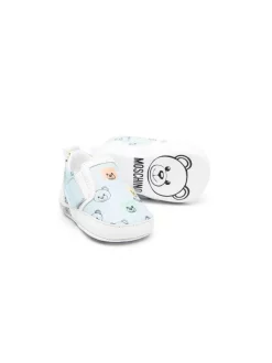 ( Nouvelle Collection ) Moschino Kids Chaussures De Pré-marche à Imprimé Teddy MK262 – Blu