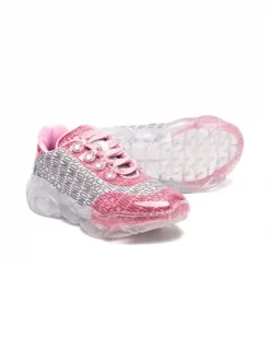 ( Nouvelle Collection ) Moschino Kids WHITE/PINK/BLACK PRINT Baskets à Logo Imprimé Enfant