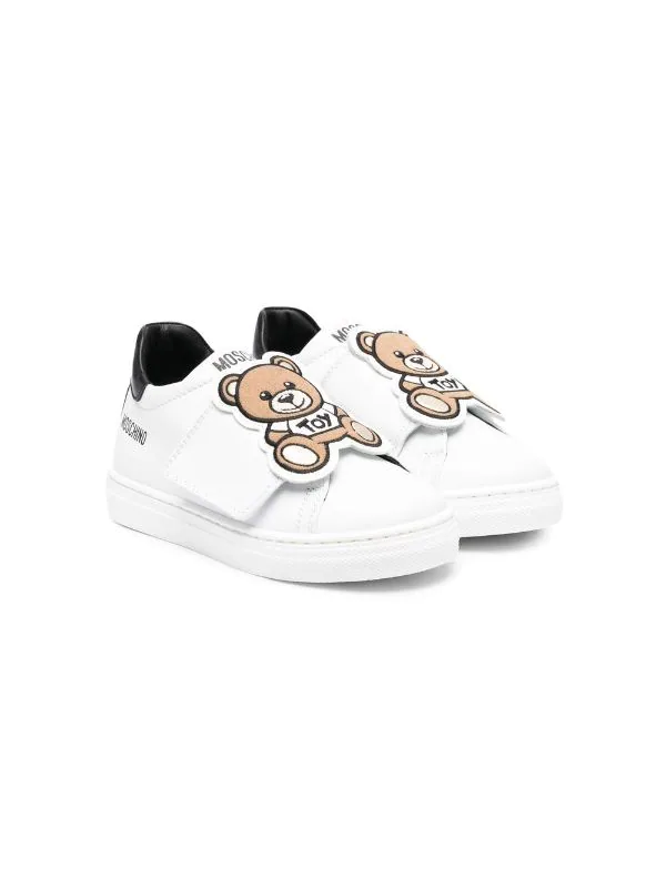 Languette à logo imprimé, bout rond, fermeture scratch sur le devant, semelle intérieure à logo, semelle plate en caoutchouc.