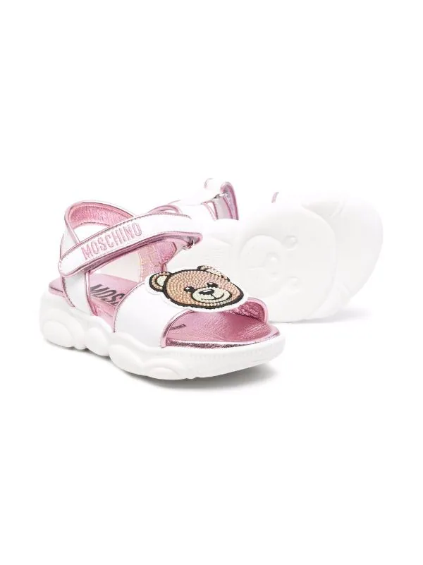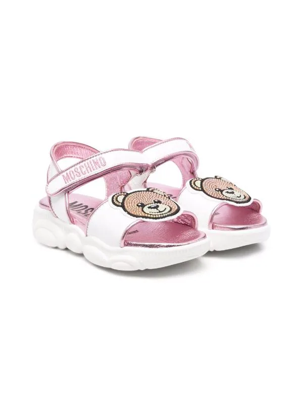 Imprimé ourson, fermeture scratch sur les côtés, bout ouvert, semelle intérieure à logo, semelle plate en caoutchouc. Couleur : rose.