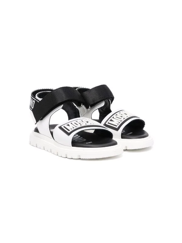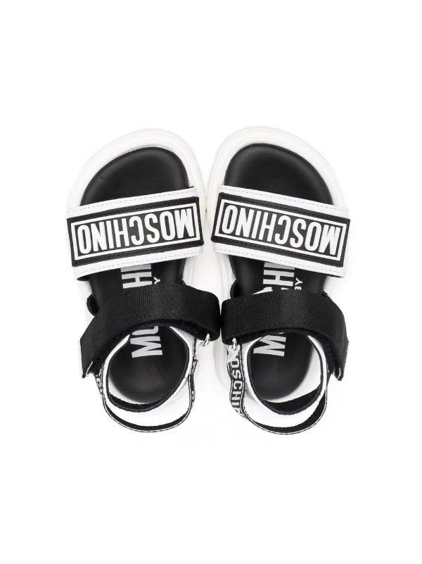 Bride à logo imprimé, bout ouvert, semelle plate en caoutchouc.