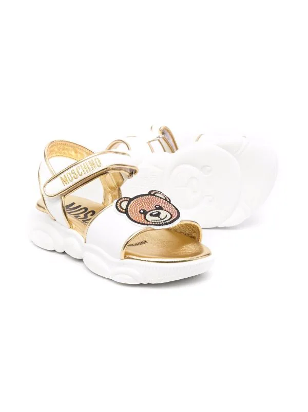 Ornement en cristal, motif Teddy Bear signature, ornement en cristal, fini métallisé, bride à un doigt, bride cheville à scratch, semelle épaisse en caoutchouc. Matière : cuir de veau.