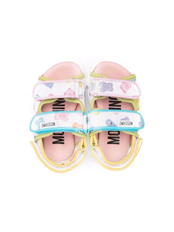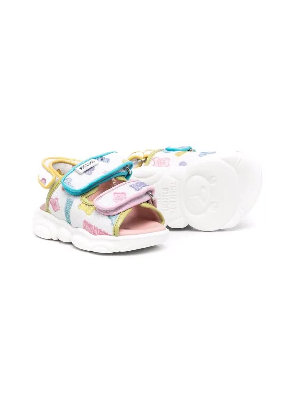 Imprimé ourson, bout ouvert, semelle plate en caoutchouc. Couleur : multicolore.