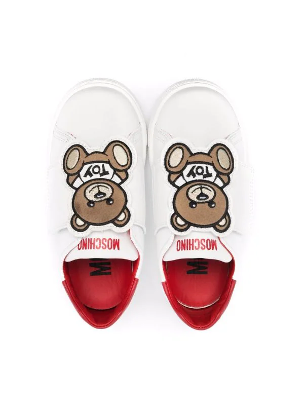 Design à empiècements, logo imprimé sur le côté, bout rond, motif Teddy Bear signature, fermeture scratch, languette à logo imprimé, semelle intérieure à logo, semelle plate en caoutchouc.