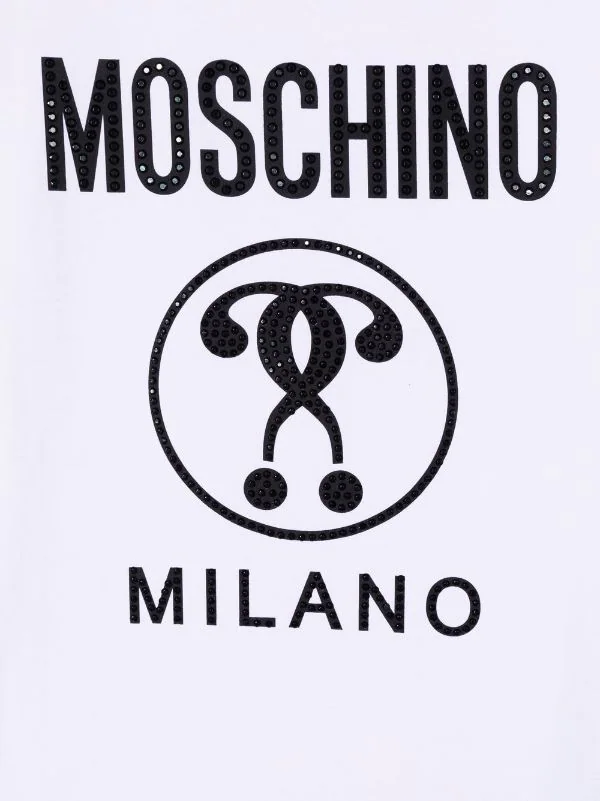 Strass, logo imprimé sur le devant, encolure ronde, manches courtes, ourlet droit. Couleur : blanc.