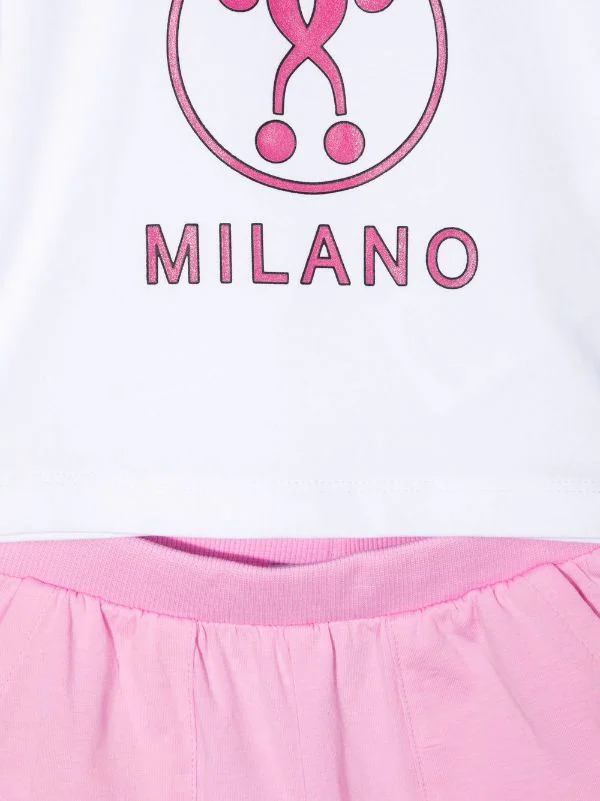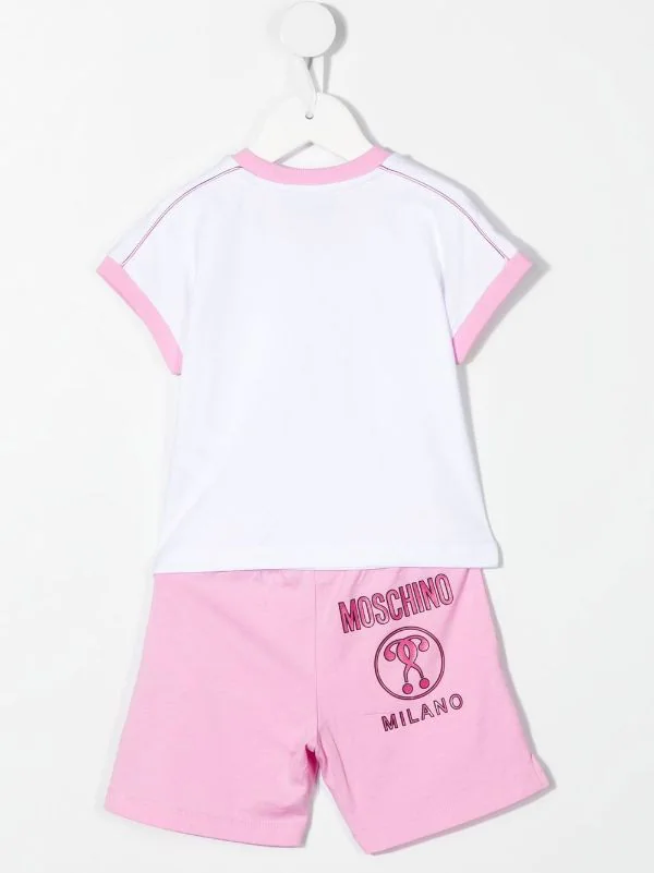 Modèle bicolore, tricot point jersey, logo imprimé sur le devant, encolure ronde, manches courtes, ourlet droit, logo imprimé à l’arrière, ceinture élastique, poches plaquées latérales, coupe droite. Matière : coton.