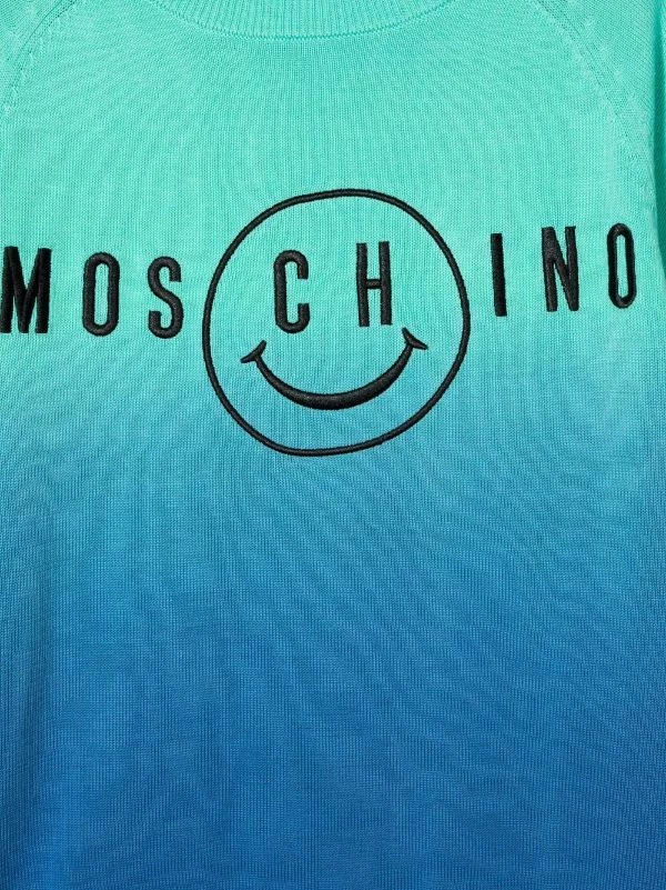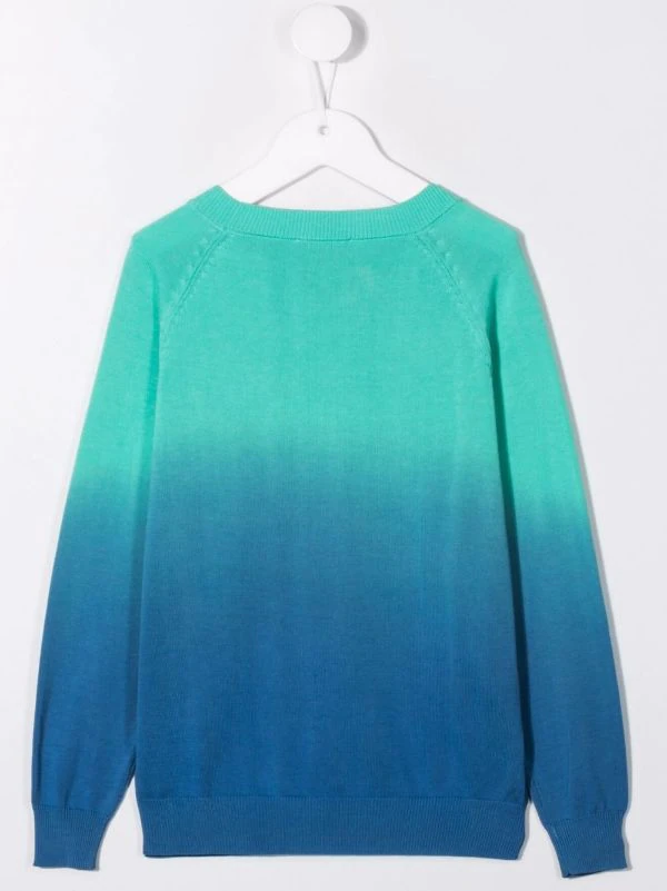 Design en maille, effet dégradé, logo brodé sur le devant, encolure ras du cou, manches longues, manches à poignets resserrés, ourlet droit. Couleur : bleu. Matière : coton.