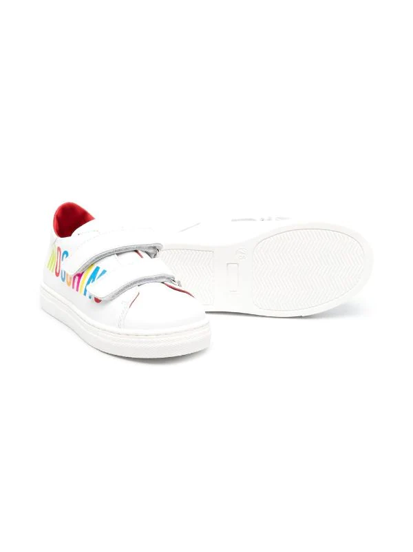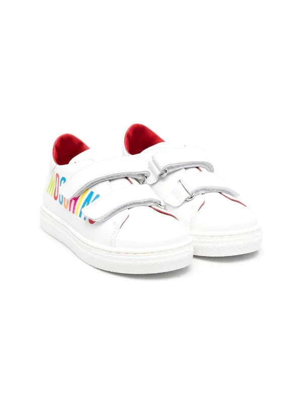 Logo imprimé sur le côté, fermeture scratch sur le devant, semelle intérieure griffée, bout rond, semelle plate en caoutchouc. Matière : cuir.