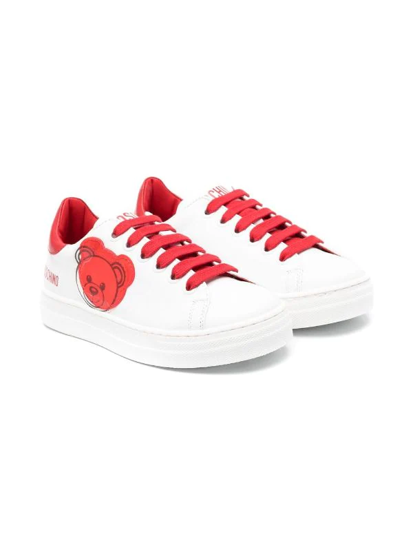 Motif Teddy Bear signature, languette à logo imprimé, bout rond, fermeture à lacer sur le devant, semelle intérieure à logo, semelle plate en caoutchouc. Matière : cuir.