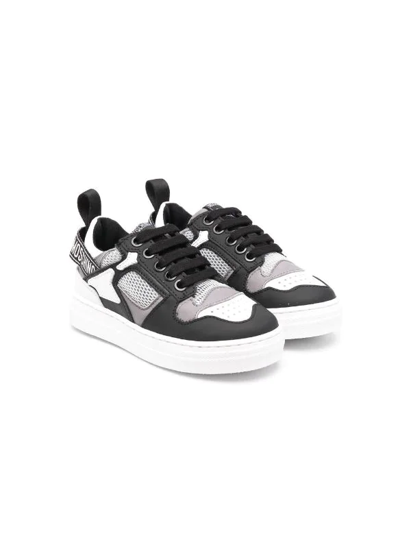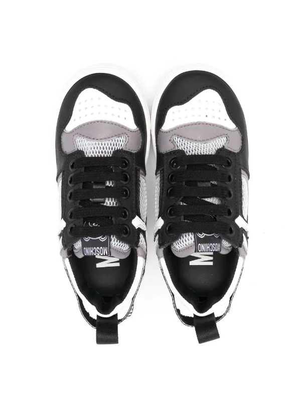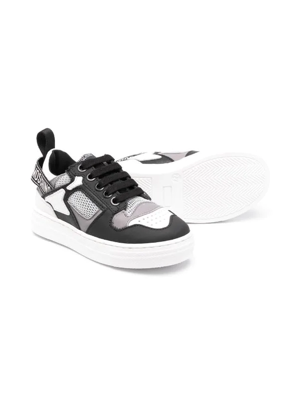 Languette à patch logo, design à empiècements colour block, bout rond, fermeture à lacer sur le devant, semelle plate.