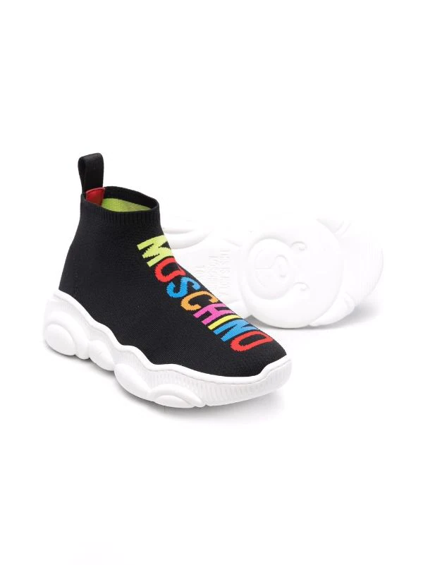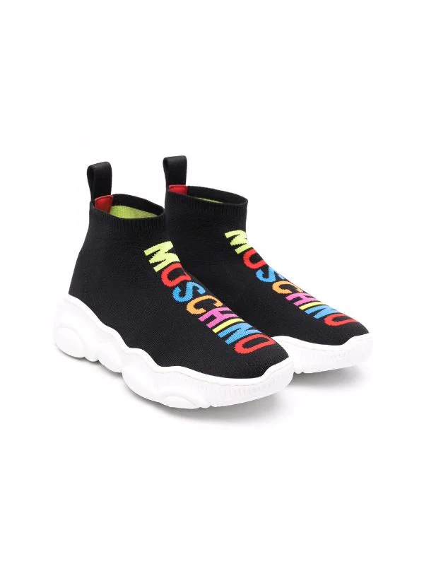 Cheville style chaussette, logo intarsia, détail nervuré, bout rond, design à enfiler, languette d’enfilage au talon, semelle intérieure à logo, semelle épaisse en caoutchouc. Matière : cuir.