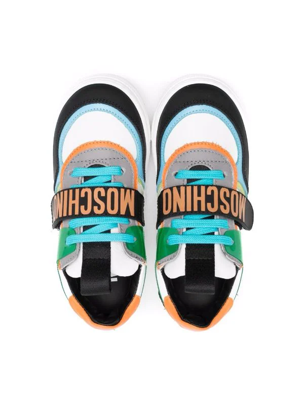 Design à empiècements, logo imprimé sur le devant, bout rond, fermeture à lacer sur le devant, fermeture scratch sur le devant, semelle intérieure à logo, semelle plate en caoutchouc. Couleur : multicolore. Matière : cuir.