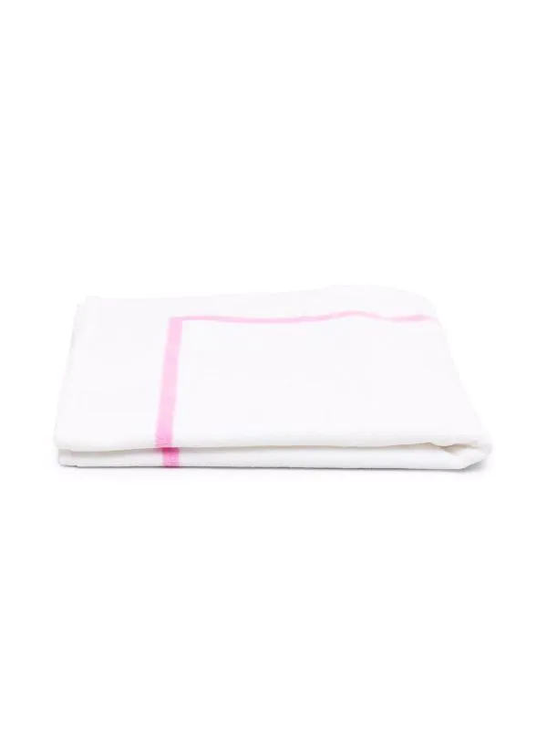 Imprimé ourson, bordure contrastante, logo imprimé sur le devant, forme rectangulaire. Matière : coton.