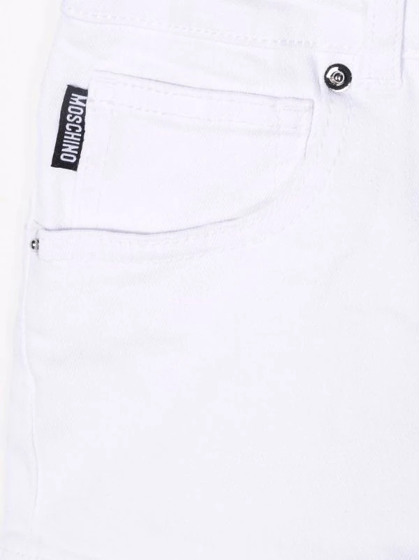 Logo imprimé sur le devant, logo imprimé à l’arrière, passants de ceinture, boutonnière sur le devant, cinq poches classiques. Couleur : blanc. Matière : coton mélangé.