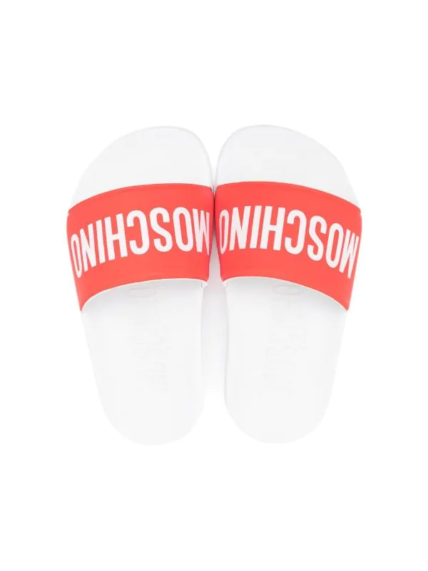 Logo imprimé sur le devant, bout ouvert, semelle plate.