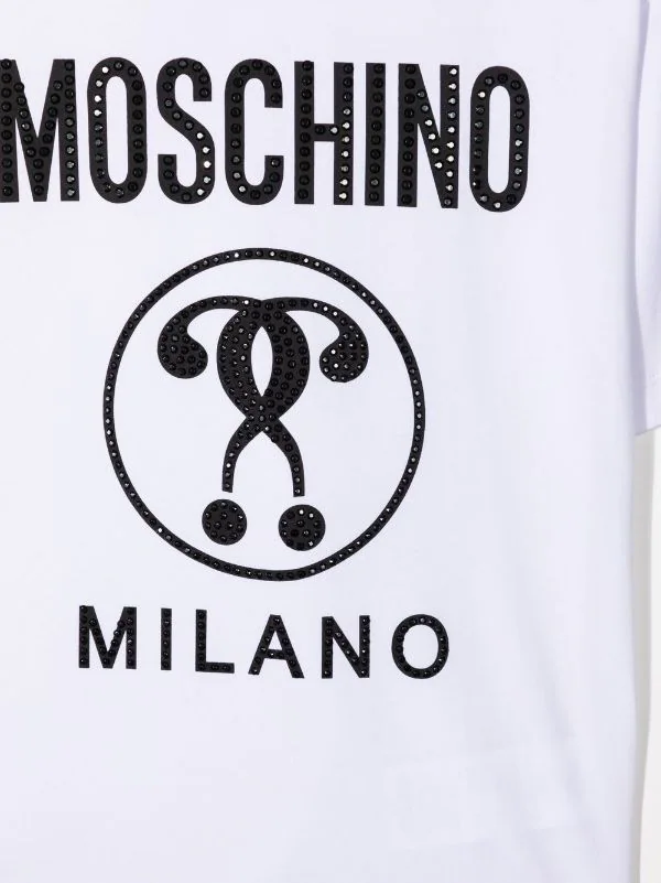 Blanc, noir de jais, coton stretch, logo imprimé à la poitrine, détails de clous, encolure ras du cou, manches courtes, ourlet droit.