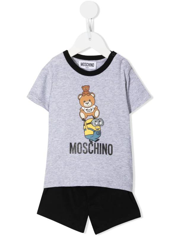 Gris, coton stretch, tricot point jersey, motif Teddy Bear signature, encolure ras du cou, manches courtes, ourlet droit, ceinture élastique, coupe droite.