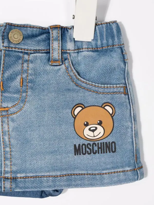 Logo imprimé sur le devant, coutures contrastantes, passants de ceinture, fermeture à zip et boutons sur le devant, poches plaquées latérales, poches arrière plaquées, ourlet droit. Couleur : bleu.