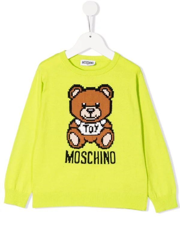 ( Nouvelle Collection ) Moschino Kids Pull En Maille à Logo Intarsia 30125 LIME