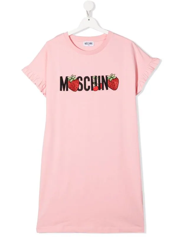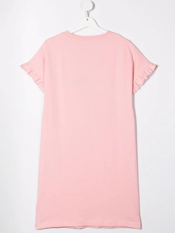 Détails de volants, logo imprimé sur le devant, encolure ronde, manches courtes. Matière : coton.