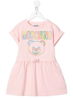 Motif Teddy Bear signature, logo brodé sur le devant, encolure ronde, manches courtes, ourlet retroussé, taille élastique à lien de resserrage, ourlet droit, longueur au dessus du genou.