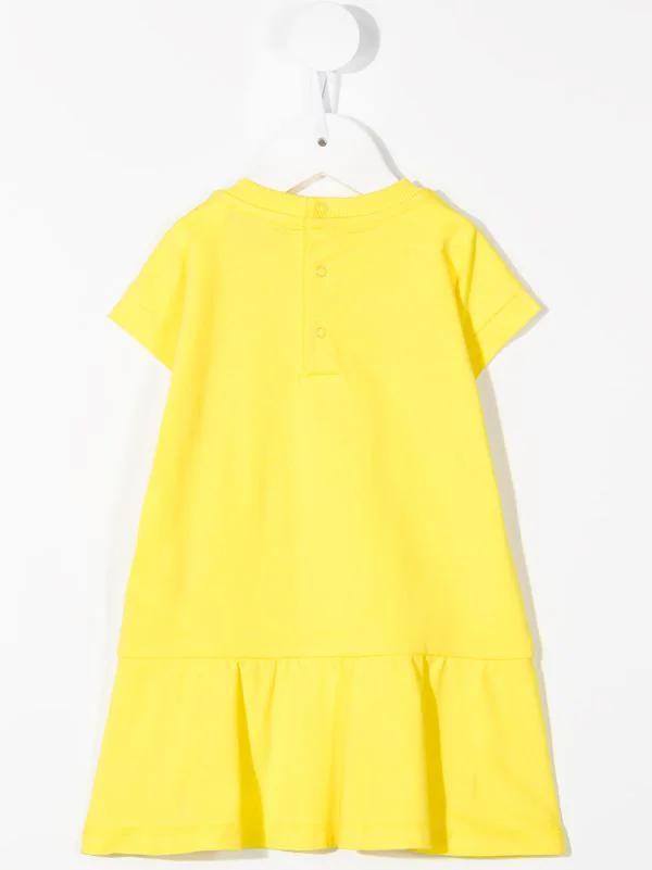 Logo imprimé à la poitrine, encolure ras du cou, manches courtes, ourlet péplum. Couleur : jaune. Matière : coton mélangé.