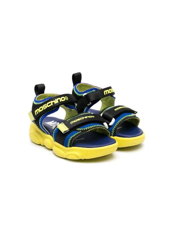 Bride à logo imprimé, semelle en caoutchouc à Teddy Bear signature, coutures contrastantes, fermeture scratch, languette d’enfilage au talon, semelle intérieure griffée, bout ouvert. Matière : cuir de veau.