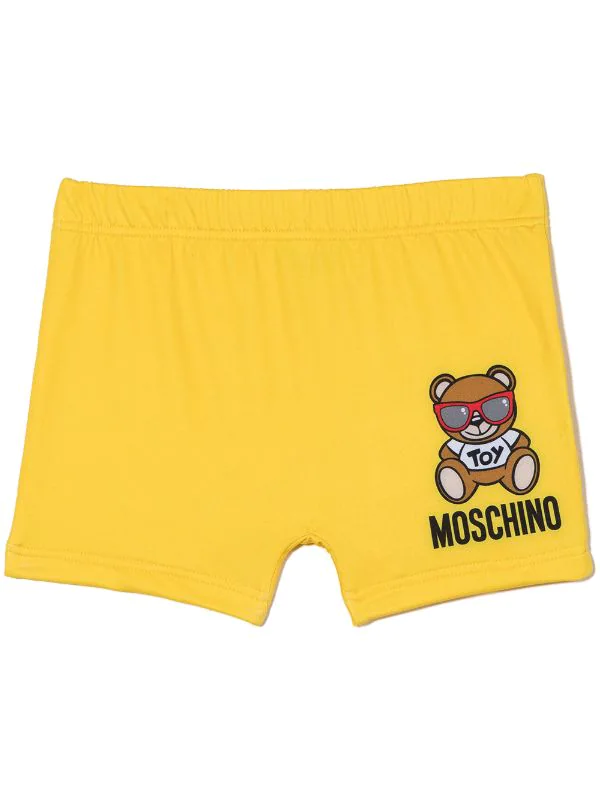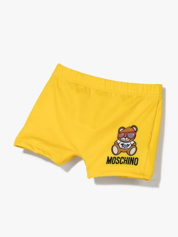 Jaune poussin, construction stretch, ceinture élastique, imprimé ourson. Veillez à essayer les maillot de bain par-dessus vos propres sous-vêtements.