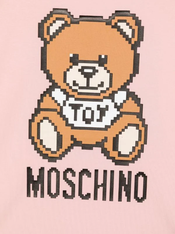 ( Nouvelle Collection ) Moschino Kids 50209 PINK Ensemble Bonnet-gants à Patch Logo Enfant