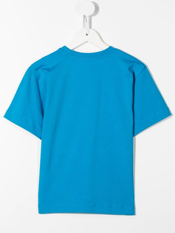 Logo imprimé à la poitrine, encolure ras du cou, manches courtes, ourlet droit. Couleur : bleu. Matière : coton.