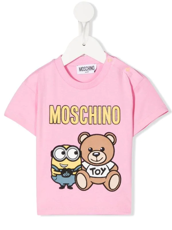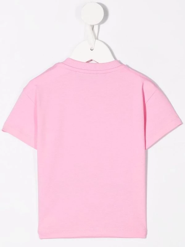Tricot point jersey, motif Teddy Bear signature, encolure ras du cou, manches courtes, ourlet droit.