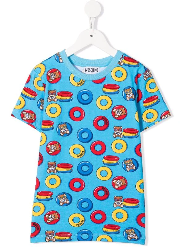 Motif Teddy Bear signature, imprimé monogrammé, encolure ronde, manches courtes. Couleur : bleu. Matière : coton.