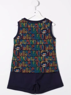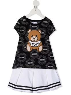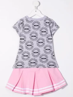 ( Nouvelle Collection ) Moschino Kids 83395 GRIGIO Ensemble Jupe-haut Teddy à Logo Imprimé Enfant