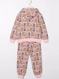 ( Nouvelle Collection ) Moschino Kids 50209 ROSA Survêtement à Imprimé Teddy Bear Enfant
