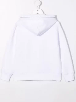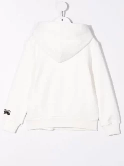( Nouvelle Collection ) Moschino Kids 10101 OPTICAL WHITE Hoodie à Logo Imprimé Enfant