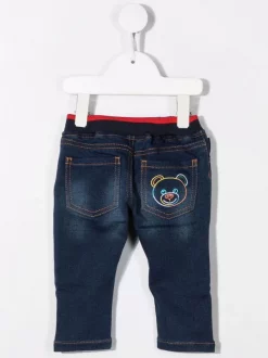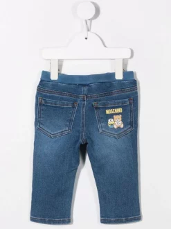 ( Nouvelle Collection ) Moschino Kids 81160 BLUE DENIM Jean Minion-Teddy à Logo Imprimé Enfant
