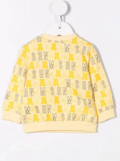 ( Nouvelle Collection ) Moschino Kids 10101 BIANCO OTTICO Sweat à Broderies Teddy Bear Enfant