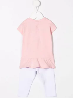 ( Nouvelle Collection ) Moschino Kids 50209 – Rosa Ensemble Haut-pantalon à Logo Imprimé Enfant