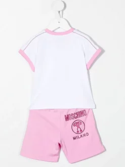 ( Nouvelle Collection ) Moschino Kids BIANCO Ensemble Haut-short à Logo Imprimé Enfant